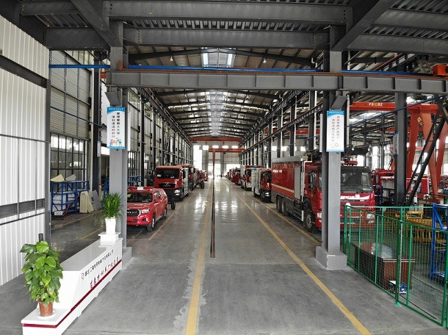 电气配置 | 驾驶室顶部前端为长排100W报器,车身后配有24V/60W火场照明灯一只,车辆两侧上方各配有红蓝相配的爆闪灯,下方安装安全标志灯,乘员室、器材箱、 泵房内均装有照明灯,回转操作开关、通讯设备预备接口。 |